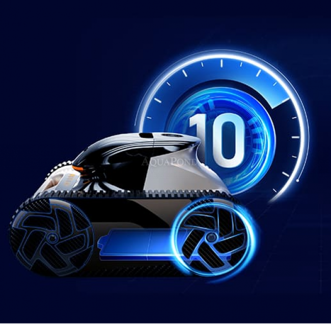 Contrairement à d'autres robots, le Warrior gère ses performances pour économiser de l'énergie, atteignant jusqu'à 10 heures de fonctionnement et gardant votre piscine propre jusqu'à 2 semaines avec une seule charge.