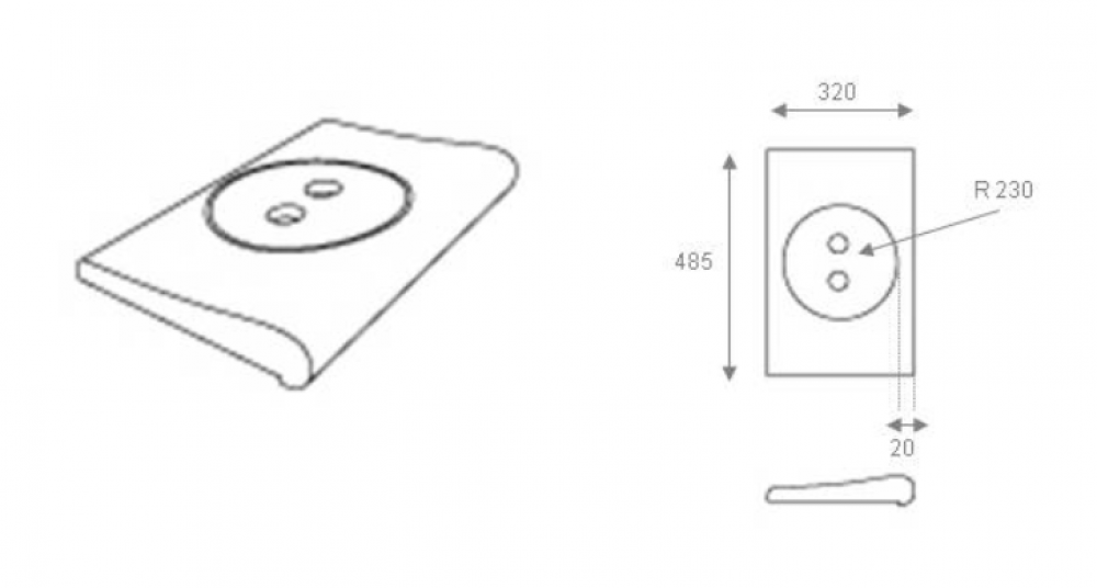 Bord de piscine avec nez - Skimmer petit 48,5 x 32 - Ø23 cm, grès blanc artificiel