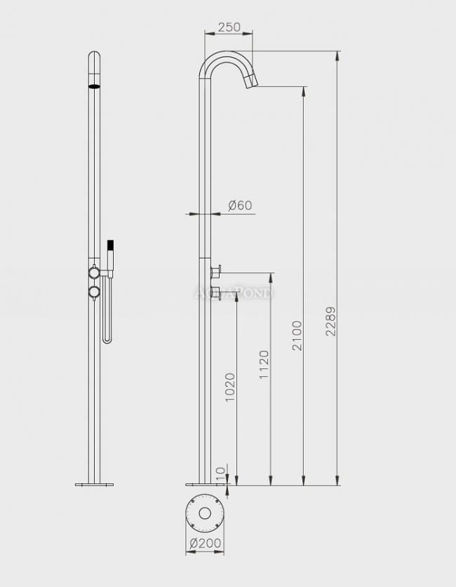 Pose de bride sur sol préparé, bride Ø200 mm. La douche est fournie avec un boîtier d`installation spécial à intégrer dans le sol. Cela permet un montage/démontage très facile de la douche. Toutes les pièces nécessaires à l`assemblage sont incluses dans le colis. |