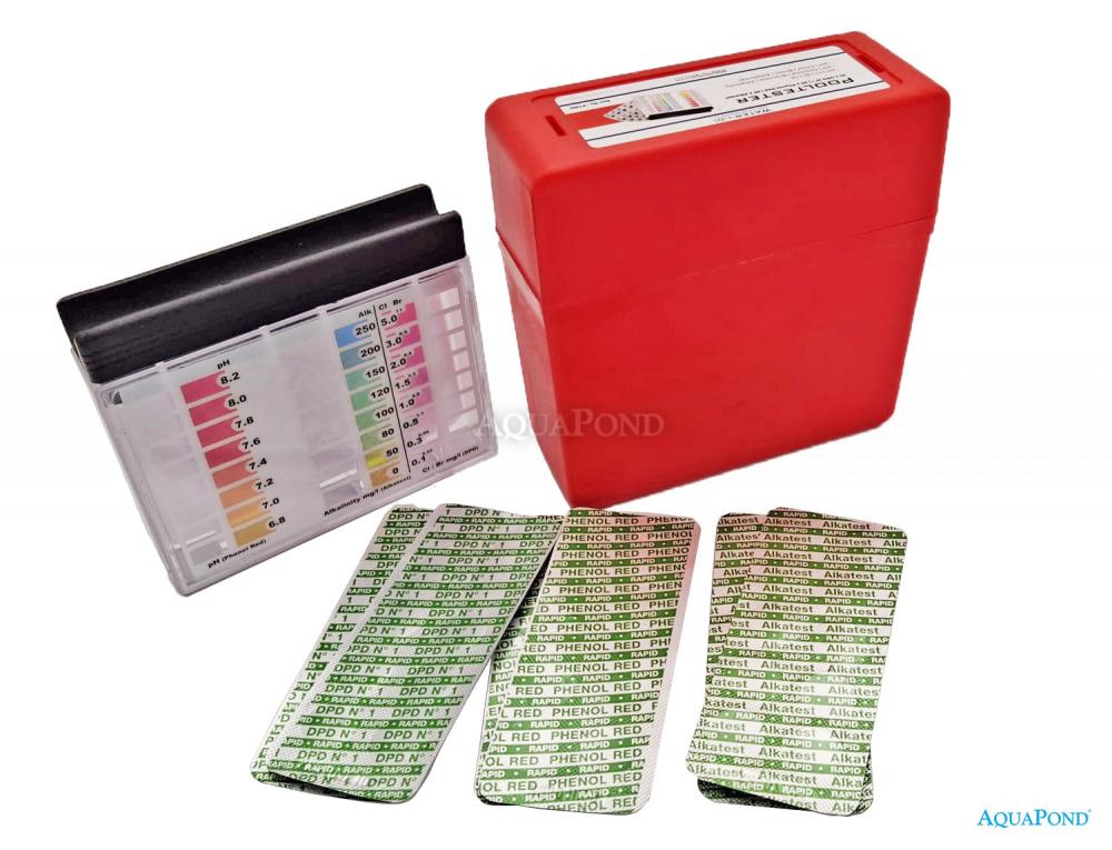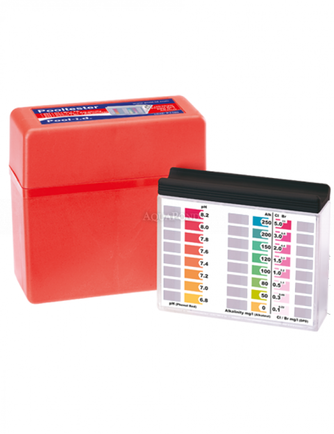 Un kit de test de l`eau de piscine qui mesure de manière fiable la valeur du pH, le chlore ou le brome libre et l`alcalinité totale de l`eau de la piscine. Les testeurs de piscine correspondent à la méthode classique de test fiable de l`eau des piscines et des spas. Tous nos Pooltesters / blocs de test ont un fond blanc. La lecture du résultat est donc aisée et ne sera pas perturbée par les couleurs de fond. Les cellules de couleur affichant les lectures peuvent également être remplies d`eau pour ajuster automatiquement les couleurs de l`échelle si l`eau de test est pré-colorée. Les testeurs de piscine allemands Water-id fonctionnent avec la technologie allemande des comprimés de mesure Water-id à dissolution rapide.