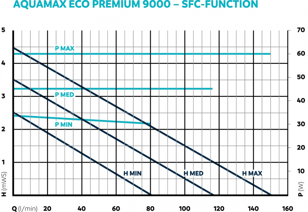 Sur AquaMax Eco Premium 5000 - 21000 : Lorsque la fonction SFC est activée, la pompe optimise automatiquement le débit et l'alimentation en eau et le réduit jusqu'à 50%